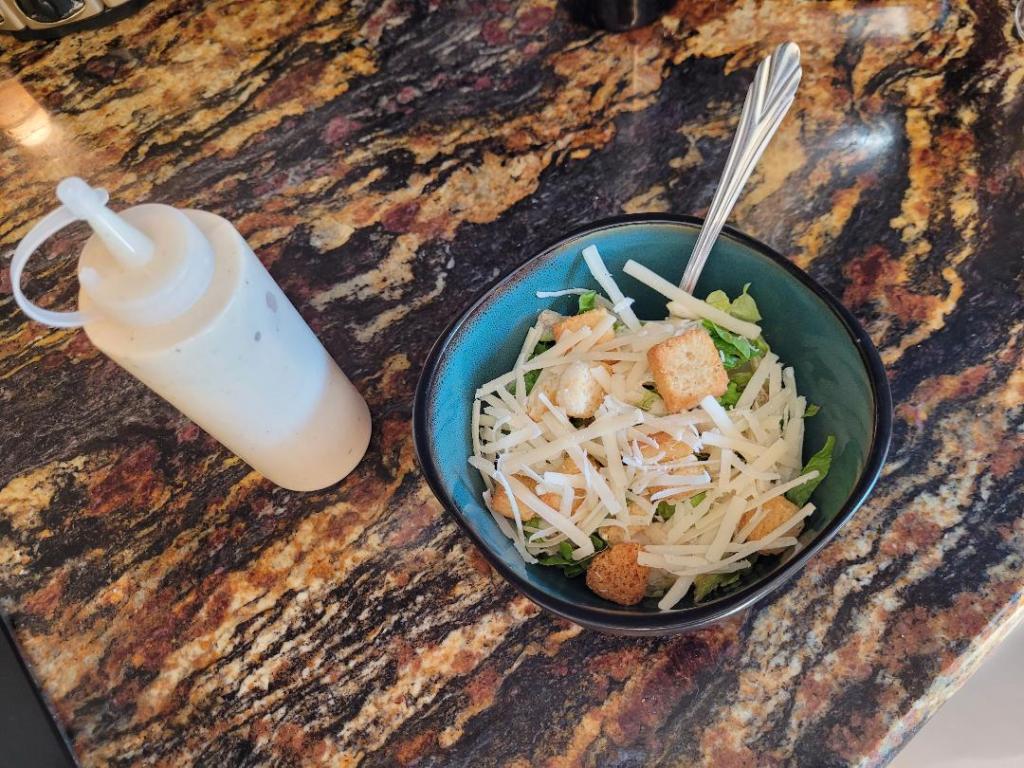 Yeah, yeah…you can buy a bottle of Caesar salad dressing and a bag of crappy ass croutons at the store…or you can make EVERY piece from scratch and it will taste a million times better!