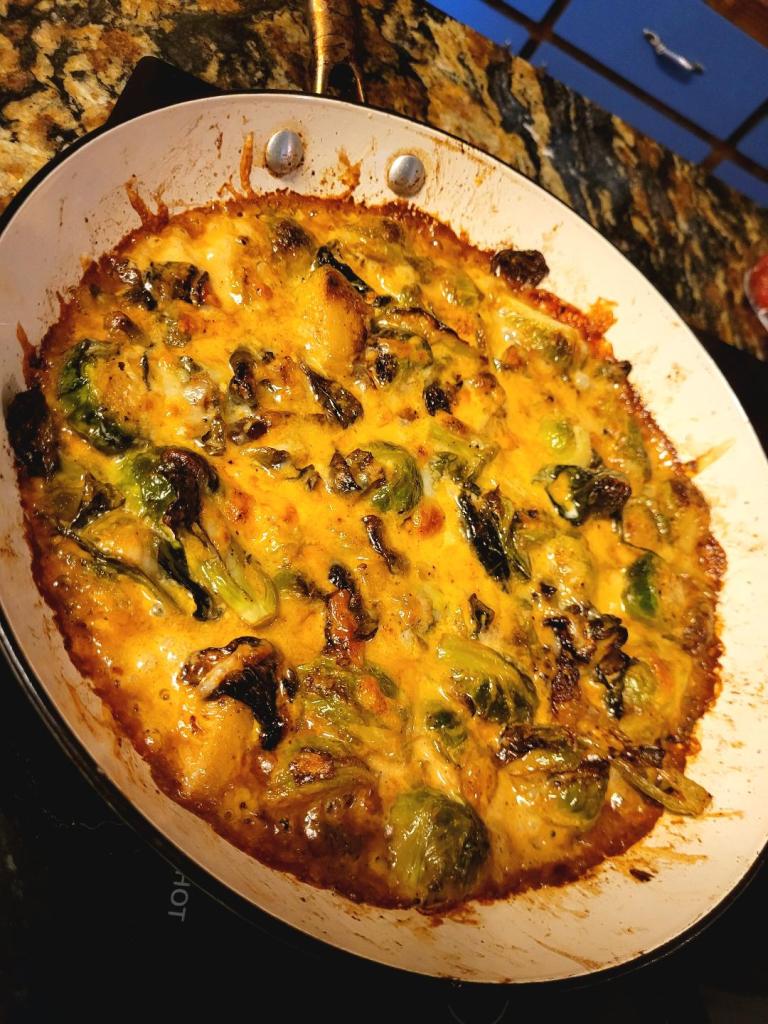 - Add in the onion and brussel sprouts, mixing so the butter coats all of the veggies (if it doesn’t fully coat, add a tbsp of olive oil)